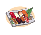 狭い新湊地区に約20軒のおすし屋さんがひしめきあう。味はどこも絶品で、お勘定は大都市圏より2割は安い!